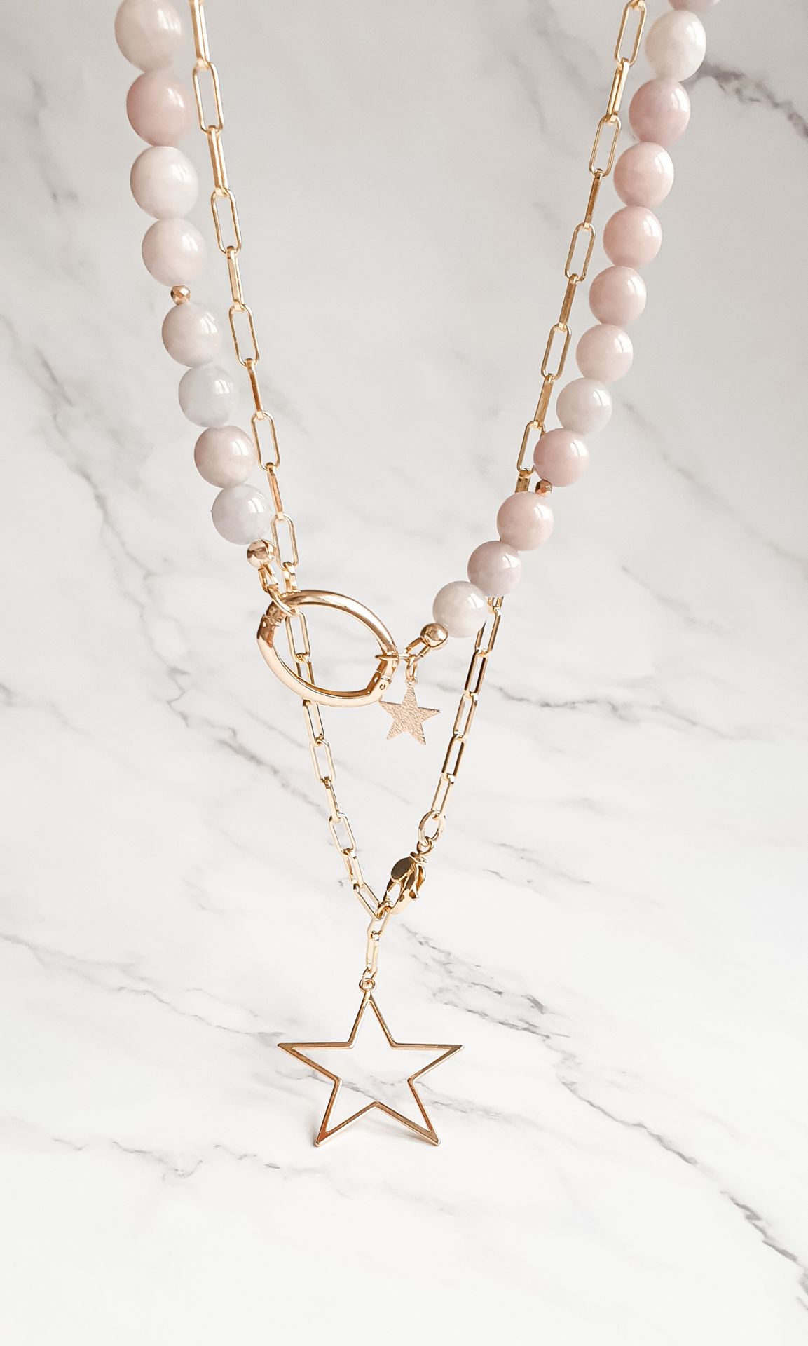 Vėrinio ilgis ~46cm, grandinės ilgis 56cm, pakabukas 4cm.